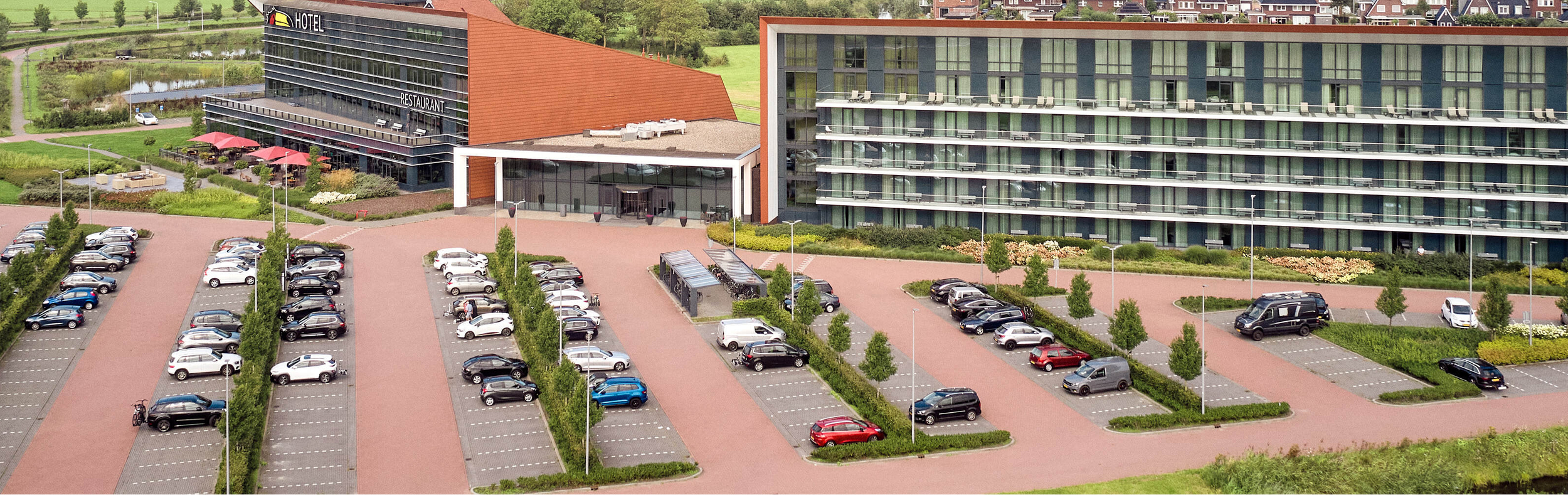 Van der Valk Hotel Leeuwarden beschikt over een groot parkeerterrein voor het hotel.